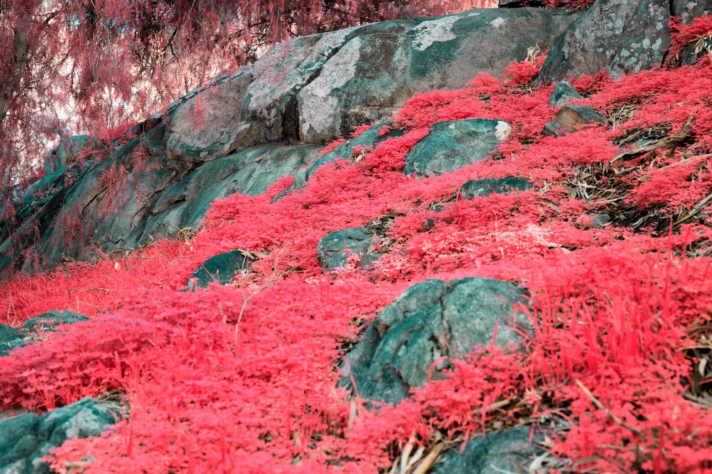 Also, following my post a little bit ago where I made some infrared photos, I thought these landscapes with the foliage weaving between all the rocks would really suit the infrared look! So here are some of the photos transformed into a parallel universe!!
